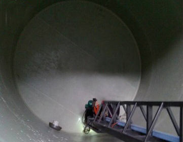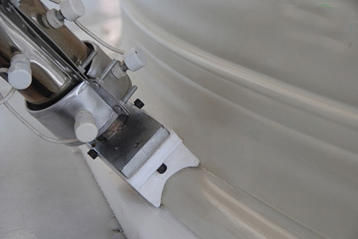 內(nèi)部焊接是采用自動(dòng)長(zhǎng)臂擠出焊接工藝,是所有工序中最重要的一步。將與罐體性質(zhì)相同的全新PPH顆粒料熱熔在內(nèi)部焊縫處,與罐底、罐體成一體,原理與外部焊接相同,只是其設(shè)備不同。